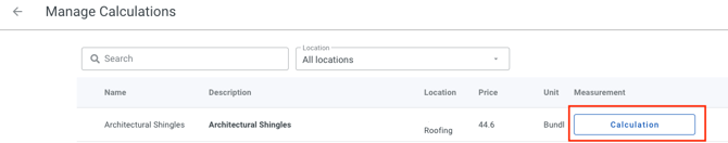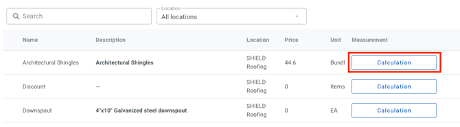 - To configure your calculations, click on the Calculation button to the far right of the product you wish to configure a calculation for.