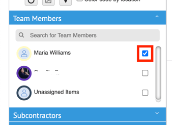 - Check the box next to the name of the Team Member whose assigned Tasks (and other types of scheduled events) you want visible. The color-coded events will appear for easy viewing.