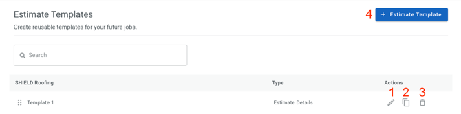 - To create a new template, select the + Estimate Template button in the upper-right corner.
