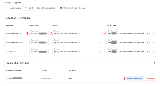 1. Select the QXO account you want to connect to your JobNimbus location.