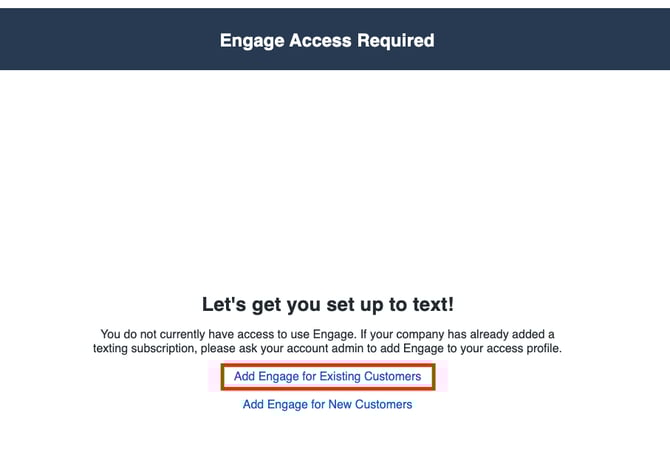 - If you are an existing customer who is not on a trial account, click Add Engage for Existing Customers.