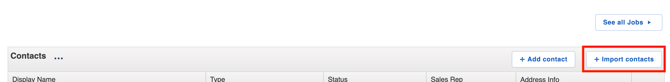 Once you have created your CSV file, go to your JobNimbus Homepage, find the section labelled Contacts and select the Import contacts button.
