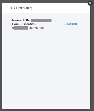 - Click the Billing history button to view your invoice totals and dates paid, as well as to download a copy of your invoices.