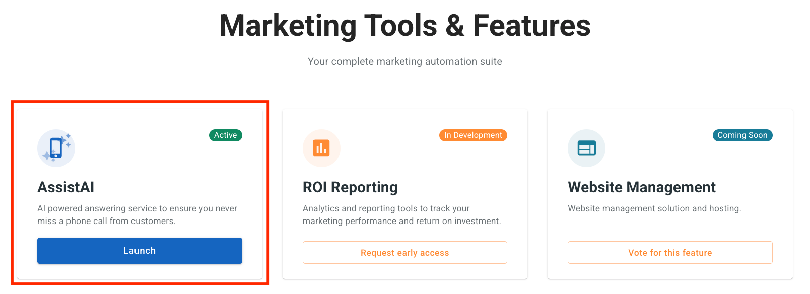 - Select Marketing from your navigation bar and select Launch under the AssistAI option.