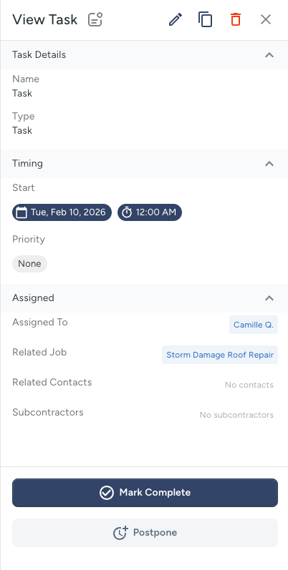 - To add a task, select the Task button at the top of the Job and fill out the necessary fields.
