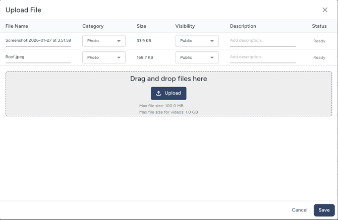 - Click and drag files from your desktop or click on the upload button to select photos. You may upload multiple photos at once by adding multiple photos in the upload option or dragging multiple files into the upload window.