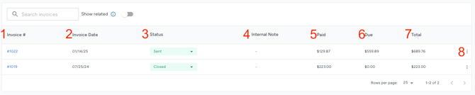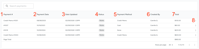 In the Payments & Invoices tab, you can view Invoices, Payments, and Credit Memos.
