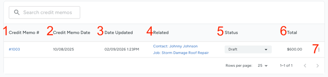 - Click on the three dots to view administrative options such as editing, duplicating, or applying a Credit Memo to an Invoice.