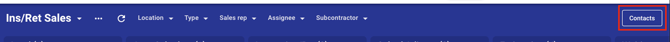 - To view your contacts in Jobs V2, click on the Contacts button on the far right of the Board view.
