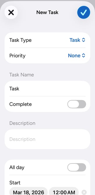 - At the bottom of the page, tap the +New task button to add a new Task.
