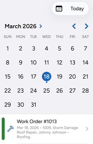 - Tapping the calendar icon at the bottom of the screen in the subcontractor's view will show an overview of the entire month, with any events you have scheduled for the selected date below the calendar display.