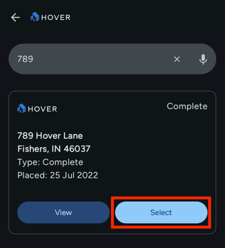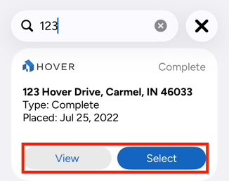 From here, you can View or Select the HOVER report.