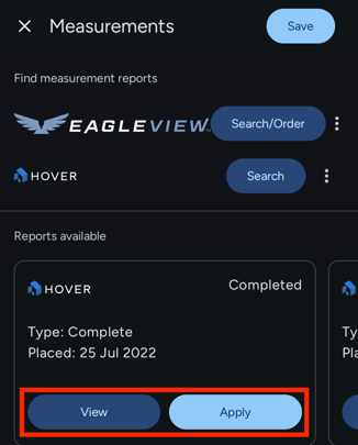From here, you can View or Apply the HOVER report.