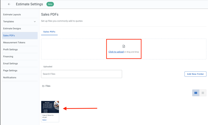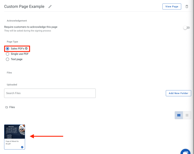 - Select the Sales PDF option, then select the PDF you wish to use under the Files section.