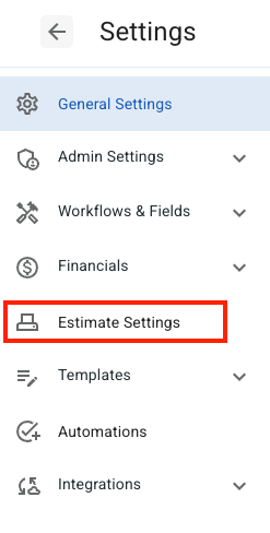 2. Under Settings, select Estimate Settings on the left-hand side.