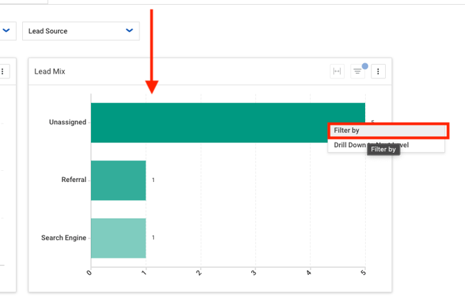 - To filter through your charts, click on the category you want to filter by and select Filter by on the populated menu.