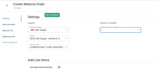 Create Estimates and Material Orders with ABC Supply.