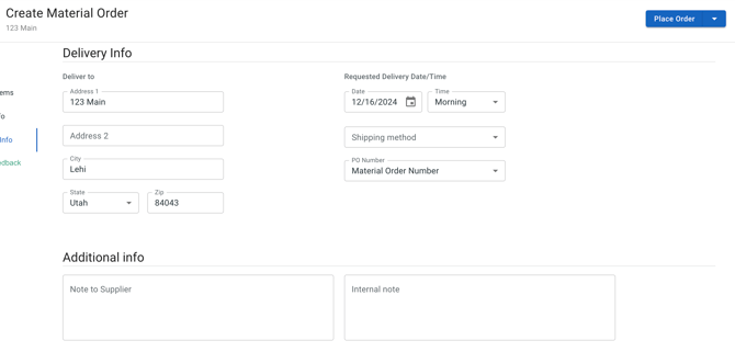 - Set the Delivery Address, the Requested Delivery Date and Time, and the Shipping Method.