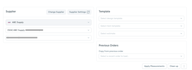 - Select ABC Supply from the Supplier dropdown menu, the desired Branch from the Branch dropdown, and the Account from the Account dropdown.