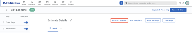 - Select the Connect Supplier button at the top right of the Estimate page.