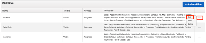 - To edit, select the three dots to the right of the workflow and select Edit.