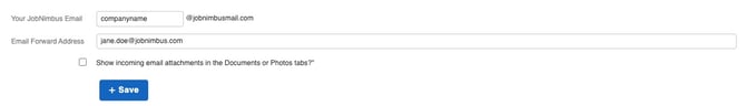 - To save email attachments as documents or photos to the Job or Contact, check the box next to "Show incoming email attachments in the Documents or Photos tab?" PDFs will automatically be saved to the Documents tab, while JPG and PNGs will be saved to the Photos tab.