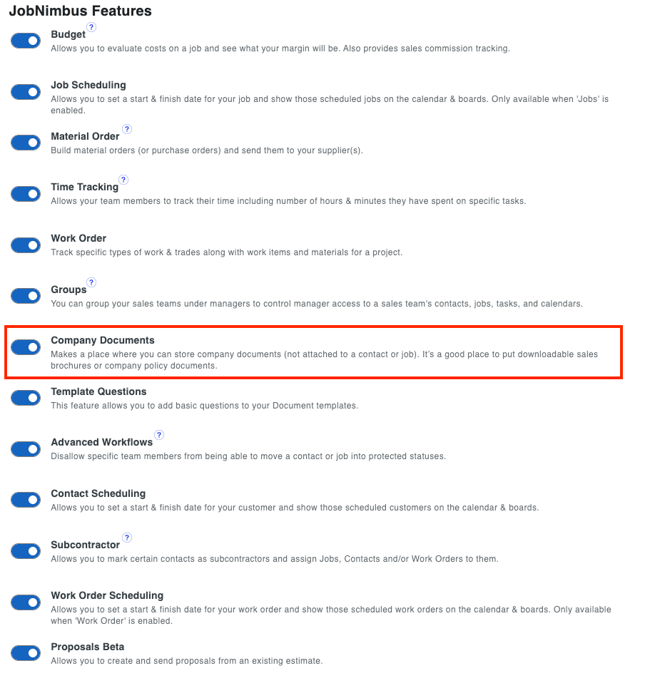- Toggle the switch next to Company Documents.