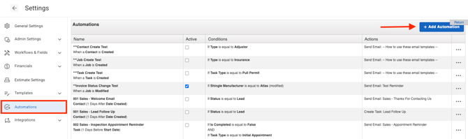 To add a new Automation, click on the blue +Add Automation button located at the top right.